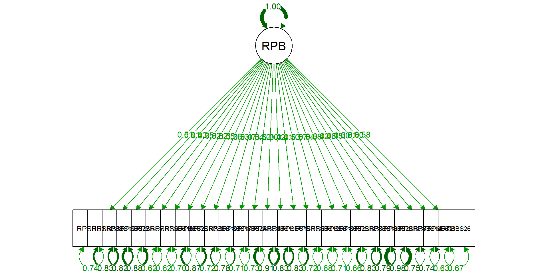 modelR <- 'RPBS =~ RPSBS1 + RPSBS8 + RPSBS15 + RPSBS22
